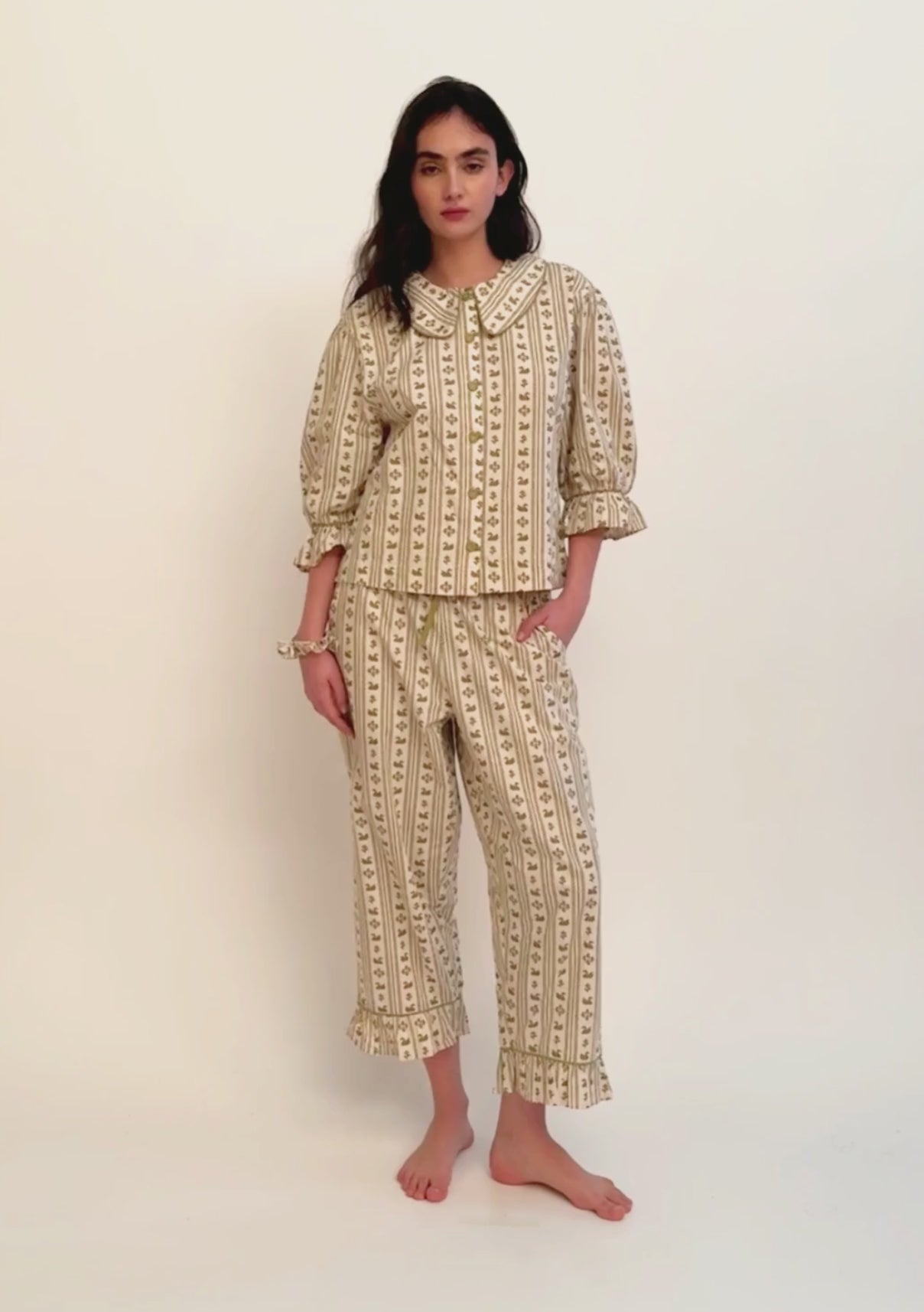 Cropped Cotton Pyjamas Olive Swan