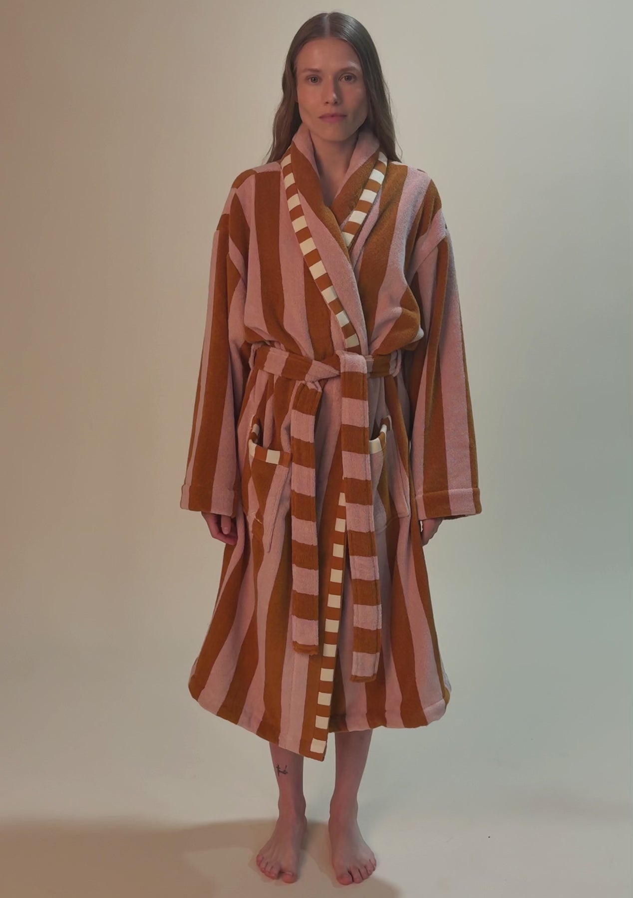 On first receiving this dressing gown in September I was really impressed with the weight and how nice it looked, however after the first wash I noticed threads coming loose, which now 6 months later is just getting worse. I wouldn’t mind as much if I hadn’t paid over £100 for this but now it just looks cheap and I imagine will just keep further unravelling and will have to get rid of, where I was hoping this would last me a long time. Just quite disappointed
