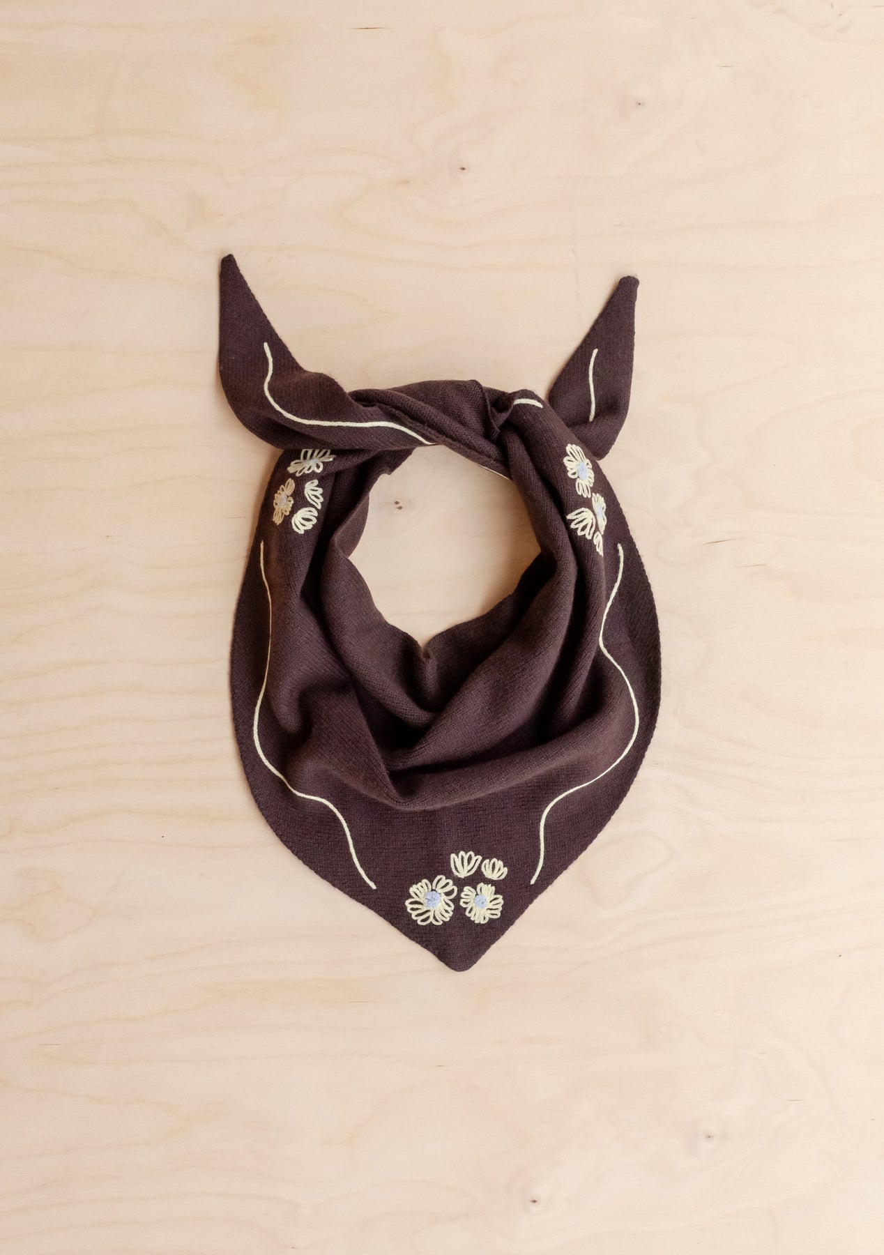 Our best-selling triangle scarf is back, this time with whimsical embroidery for a high-impact finish. This brown design is knitted from lightweight and super soft merino wool with yellow floral embroidery detail. It can be tied multiple ways for endless styling options and is the perfect finishing touch you'll reach for time and time again. Read more on our blog here.