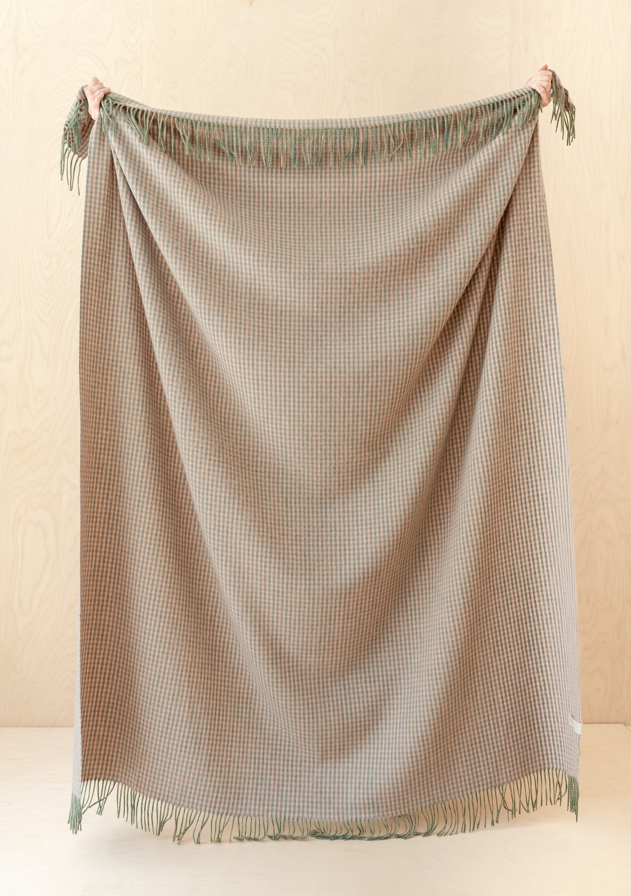 Musterverkauf einer Decke aus Lammwolle Grünes Twill-Karomuster