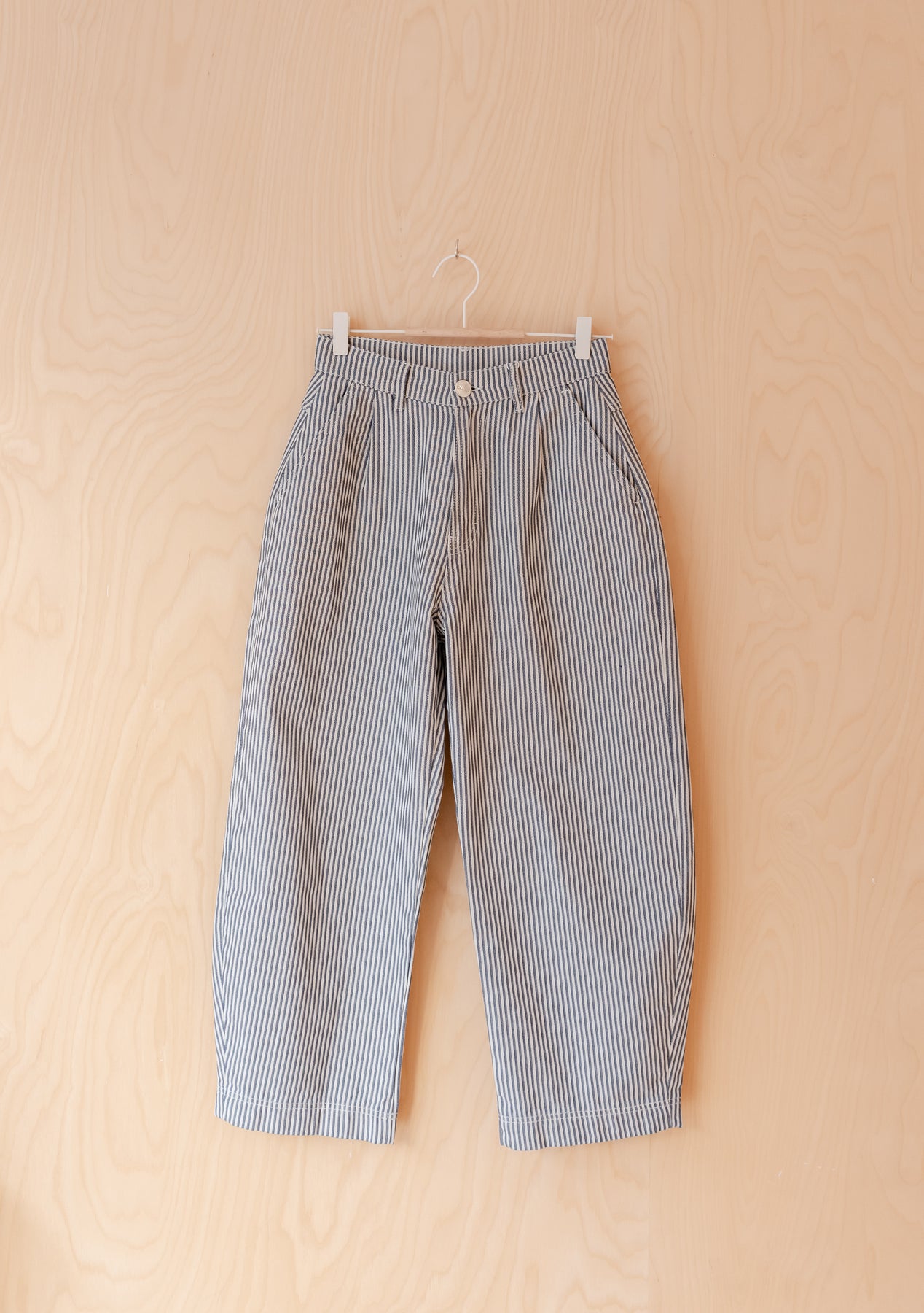 Diese Jeanshose aus 100 % Baumwolle zeichnet sich durch ein klassisches blau-weißes Fischgrätmuster, eine schmeichelhafte verkürzte Barrel-Leg-Silhouette und praktische Taschen auf der Rückseite und an den Hüften aus. Kombinieren Sie sie mit dem passenden Oberteil mit seitlicher Schleife für einen koordinierten Look.