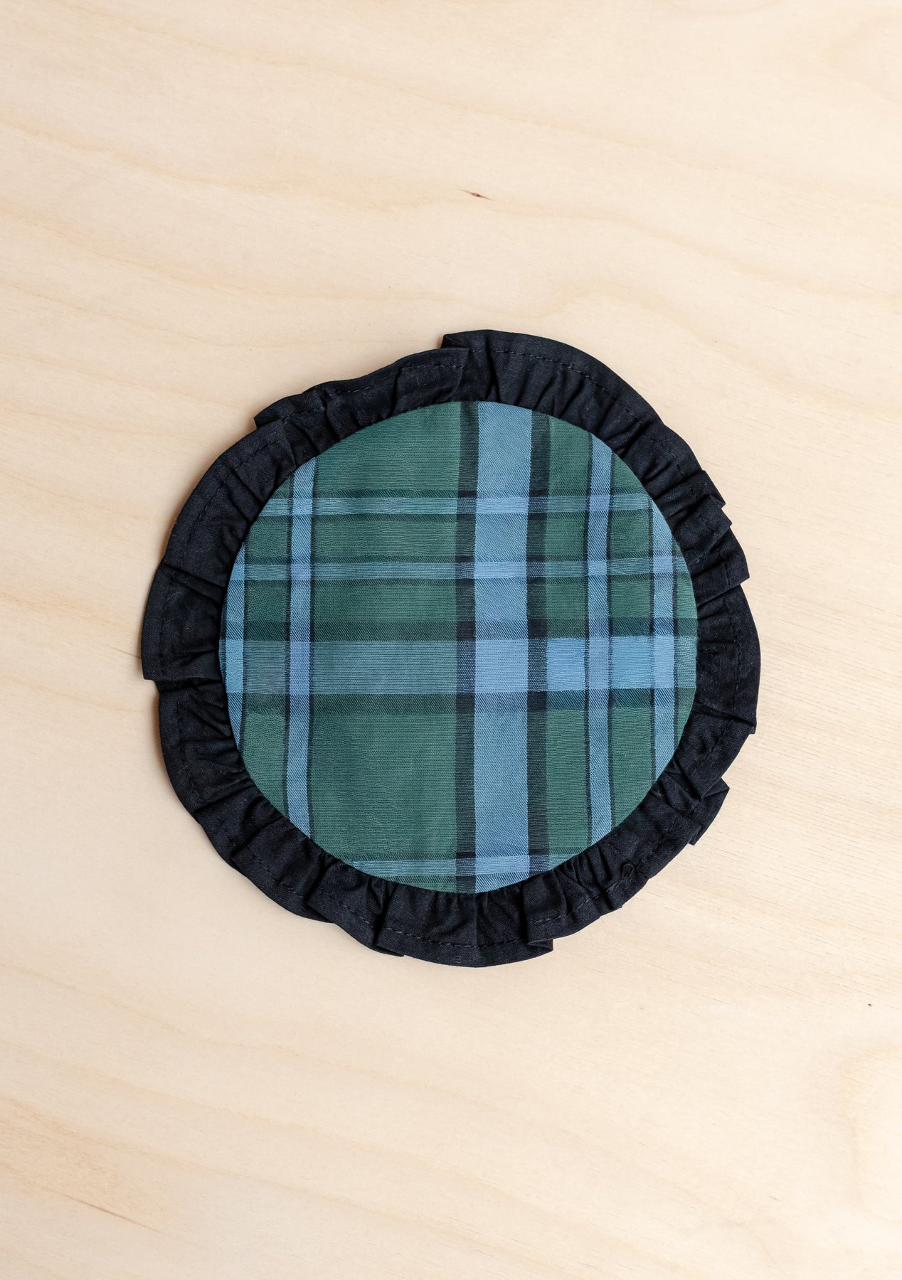 Apportez une touche festive à votre table avec ce lot de deux sous-verres en coton à carreaux tartan verts et bleus intemporels. Confectionnés en coton 100 % durable et ornés d'un bord volanté noir contrastant, ils sont parfaits pour ajouter une note chaleureuse et colorée à vos fêtes de fin d'année. Décoration de table. Complétez votre décoration en associant les éléments de notre collection de vaisselle , notamment les chemins de table et les sets de table.