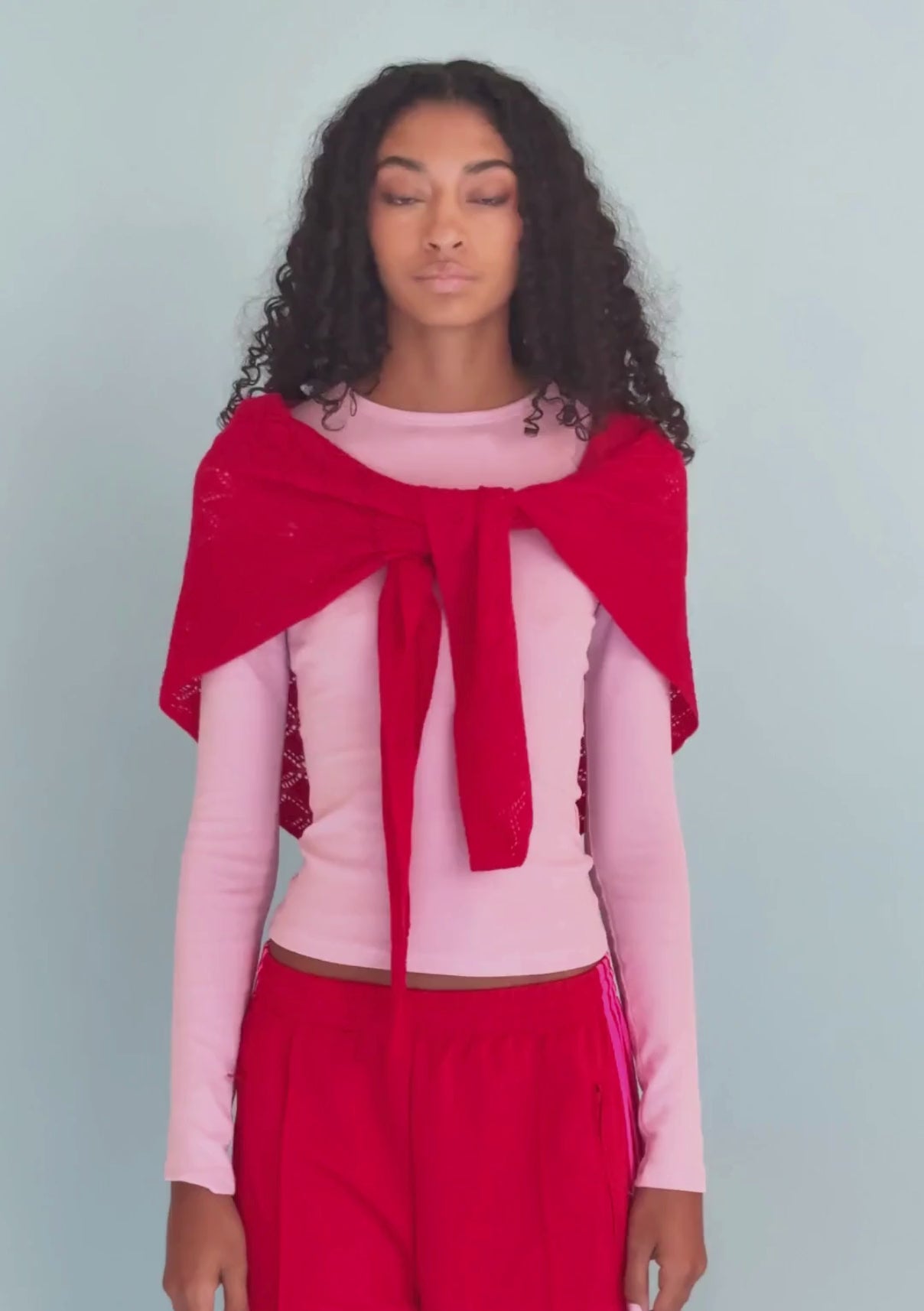 Grande écharpe triangulaire en laine mérinos Pointelle rouge