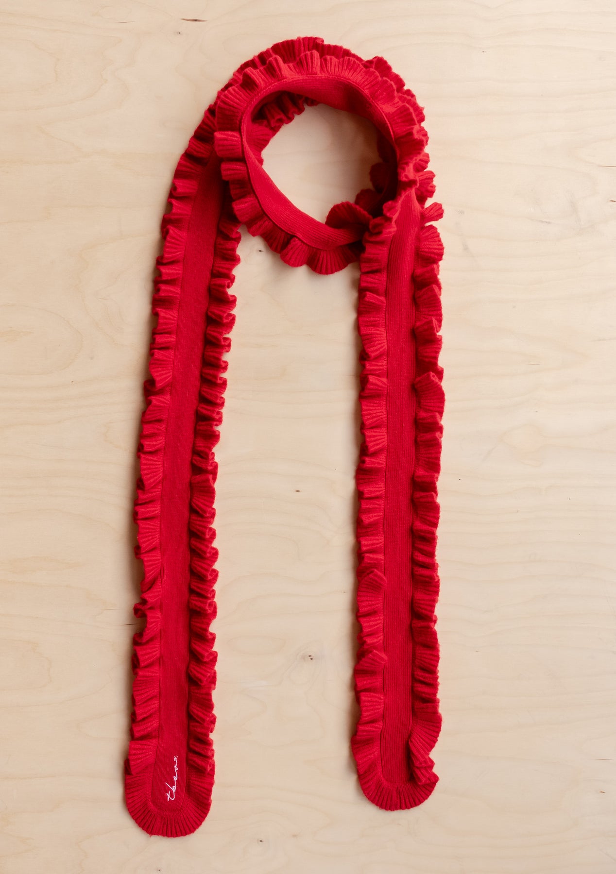 Voici votre accessoire indispensable. Cette saison, notre écharpe fine emblématique se réinvente avec une bordure à volants ludique. Ce modèle 100 % laine mérinos, d'un rouge éclatant, apporte chaleur, texture et originalité en toute simplicité, rehaussant vos tenues préférées sans avoir à renouveler toute votre garde-robe.