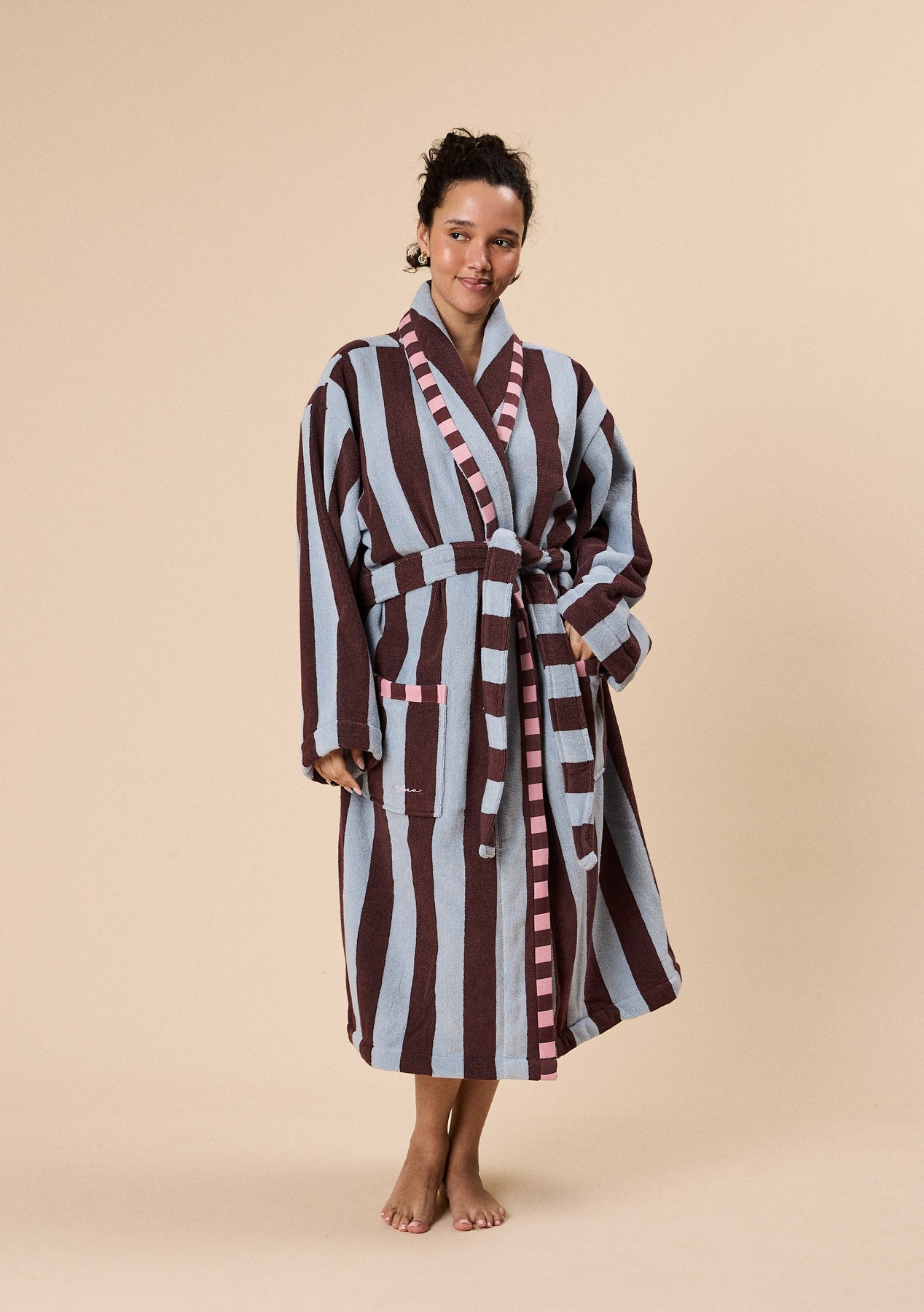 Peignoir en coton éponge Rayure bleue